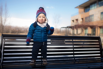 The family of the late Cagney Wenk dedicated a bench to BCH staff in the courtyard of Foothills Hospital on December 23, 2017 with one special guest in attendance: Cagney's one-year-old son, Levon.