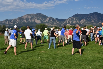 Dr. Trujillo gave a very entertaining talk before leading a stretch and then off we went, walking a loop around East Boulder Park!