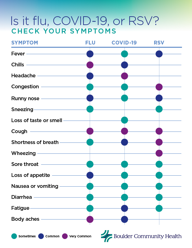With such similar symptoms, there are tests to tell us whether someone has flu, COVID-19 or RSV. Testing also provides valuable insight on how long you should isolate and whether there are any antiviral treatment options. Depending on your underlying health problems, testing may be even more important and should be discussed with your primary care provider.