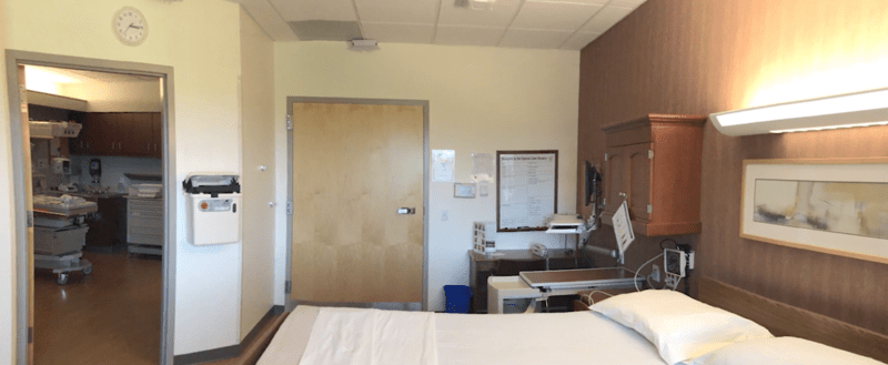 Quiet, private one-room for newborns and an adjoining room for family members—so